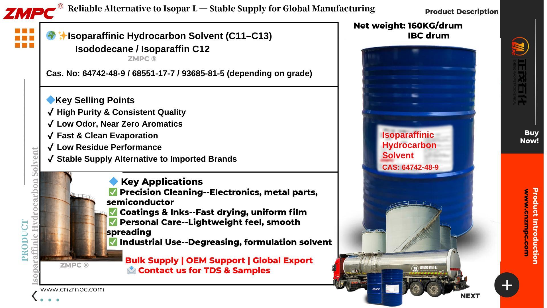 ZMPC supplies high-purity isoparaffinic hydrocarbon solvents (C11–C13) for global manufacturers.
